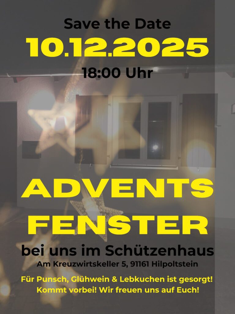 Die Eröffnung unseres Adventsfensters findet am 10.12.2025 um 18 Uhr statt. Kommt gerne vorbei! Wir freuen uns auf Euch!